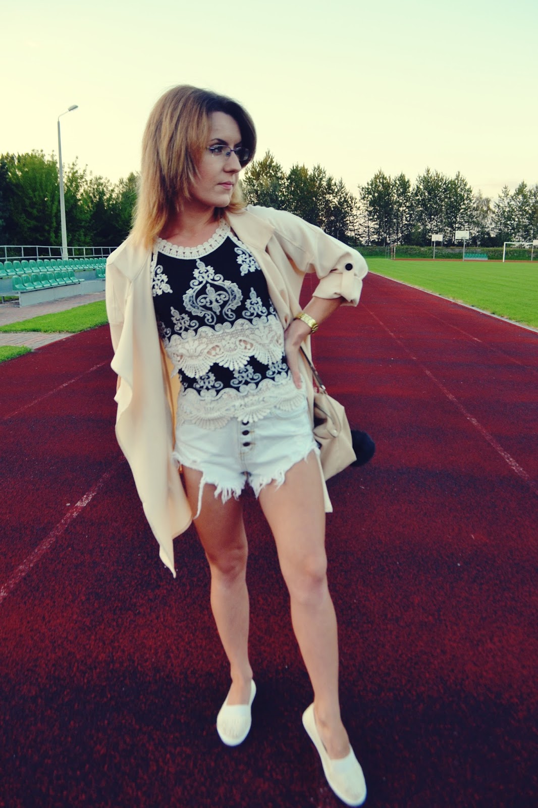 Dziś dla Was ogromna dawka zdjęć. Postaraliśmy się wszyscy by zdjęcia wyszły ładnie. Piękny crop top jest w zestawie ze spodenkami, oczywiście ja pokazuję teraz sam top. Połączyłam z jeansowymi szortami. Są świetne, ale jednak nie dla mnie. Mam dziwną budowę ciała i po prostu wyglądam w nich brzydko. Hmm albo może mam za małą pupę. No cóż nie ważne. Narzutkę miałam taką samą rok temu, zamówiłam ją ponownie, ale oczywiście przysłali mi rozmiar M, a chciałam S.